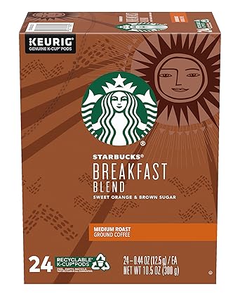 Amazon Com Starbucks Breakfast Blend Coffee K Cup Pods Medium Roast Ground Coffee K Cups For Keurig Brewing System 24 Ct Recyclable Pods Per Box Pack Of 1 Grocery Gourmet Food